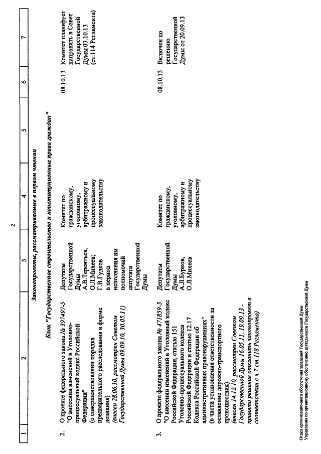 "О КАЛЕНДАРЕ РАССМОТРЕНИЯ ВОПРОСОВ ГОСУДАРСТВЕННОЙ ДУМОЙ С 8 ПО 25 ОКТЯБРЯ 2013 ГОДА"