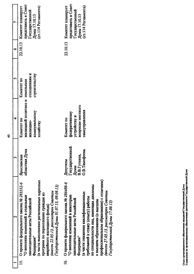 "О КАЛЕНДАРЕ РАССМОТРЕНИЯ ВОПРОСОВ ГОСУДАРСТВЕННОЙ ДУМОЙ С 8 ПО 25 ОКТЯБРЯ 2013 ГОДА"