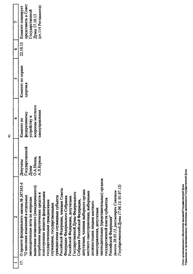 "О КАЛЕНДАРЕ РАССМОТРЕНИЯ ВОПРОСОВ ГОСУДАРСТВЕННОЙ ДУМОЙ С 8 ПО 25 ОКТЯБРЯ 2013 ГОДА"
