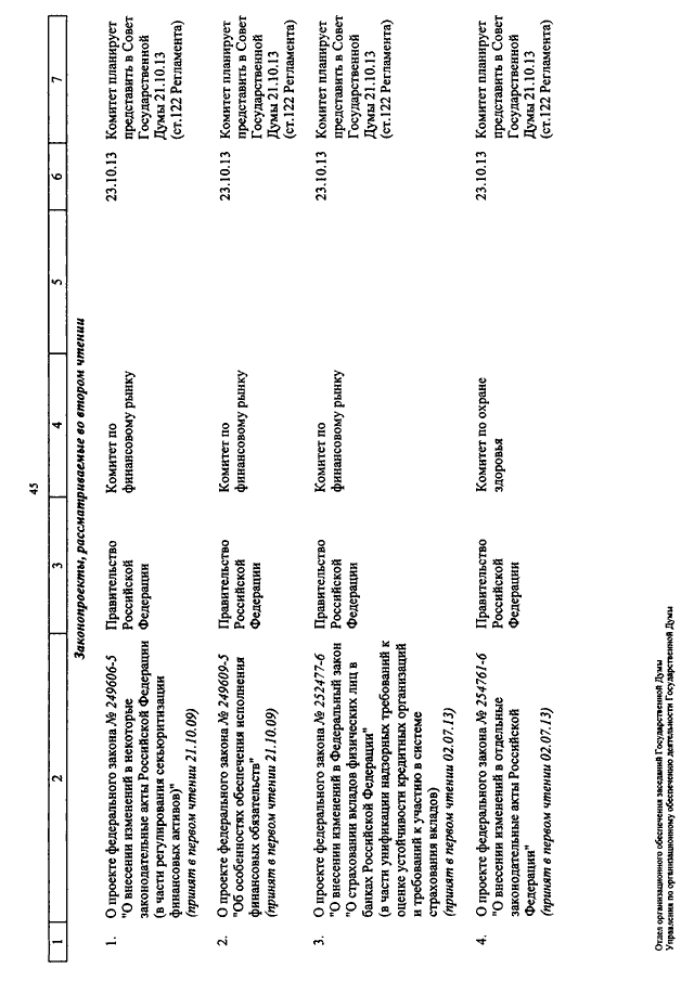 "О КАЛЕНДАРЕ РАССМОТРЕНИЯ ВОПРОСОВ ГОСУДАРСТВЕННОЙ ДУМОЙ С 8 ПО 25 ОКТЯБРЯ 2013 ГОДА"