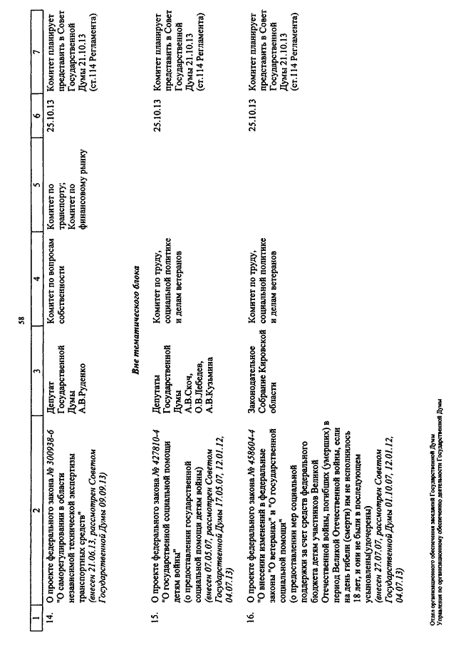 "О КАЛЕНДАРЕ РАССМОТРЕНИЯ ВОПРОСОВ ГОСУДАРСТВЕННОЙ ДУМОЙ С 8 ПО 25 ОКТЯБРЯ 2013 ГОДА"
