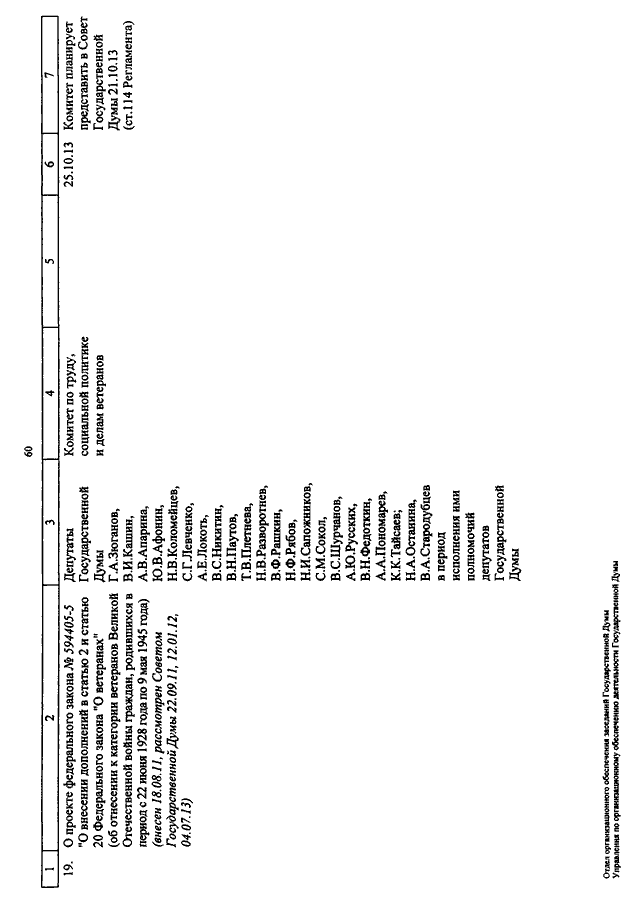 "О КАЛЕНДАРЕ РАССМОТРЕНИЯ ВОПРОСОВ ГОСУДАРСТВЕННОЙ ДУМОЙ С 8 ПО 25 ОКТЯБРЯ 2013 ГОДА"