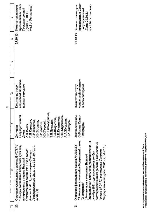 "О КАЛЕНДАРЕ РАССМОТРЕНИЯ ВОПРОСОВ ГОСУДАРСТВЕННОЙ ДУМОЙ С 8 ПО 25 ОКТЯБРЯ 2013 ГОДА"