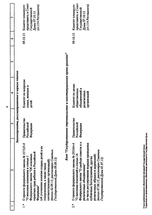 "О КАЛЕНДАРЕ РАССМОТРЕНИЯ ВОПРОСОВ ГОСУДАРСТВЕННОЙ ДУМОЙ С 8 ПО 25 ОКТЯБРЯ 2013 ГОДА"