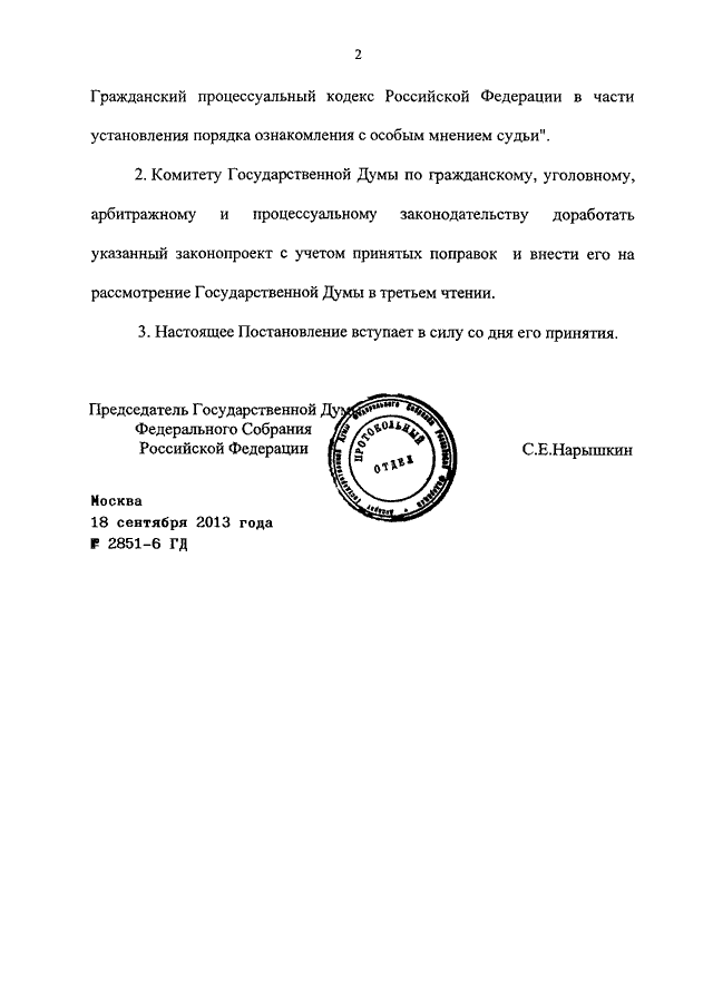 ПОСТАНОВЛЕНИЕ ГД ФС РФ от 18.09.2013 N 2851-6 ГД