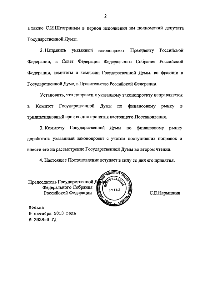 ПОСТАНОВЛЕНИЕ ГД ФС РФ от 09.10.2013 N 2928-6 ГД