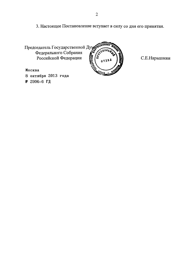 ПОСТАНОВЛЕНИЕ ГД ФС РФ от 08.10.2013 N 2906-6 ГД