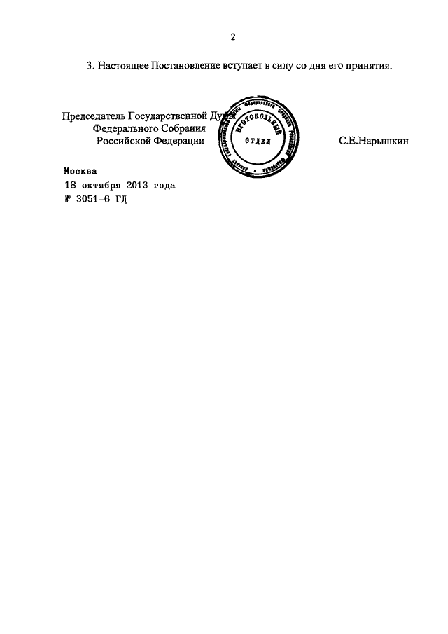 ПОСТАНОВЛЕНИЕ ГД ФС РФ от 18.10.2013 N 3051-6 ГД