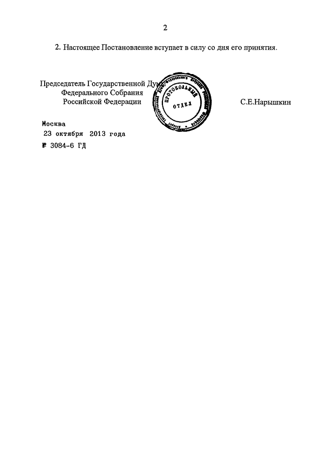 ПОСТАНОВЛЕНИЕ ГД ФС РФ от 23.10.2013 N 3084-6 ГД