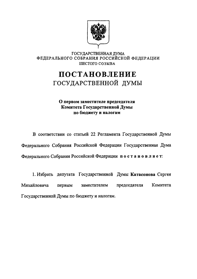 "О ПЕРВОМ ЗАМЕСТИТЕЛЕ ПРЕДСЕДАТЕЛЯ КОМИТЕТА ГОСУДАРСТВЕННОЙ ДУМЫ ПО БЮДЖЕТУ И НАЛОГАМ"