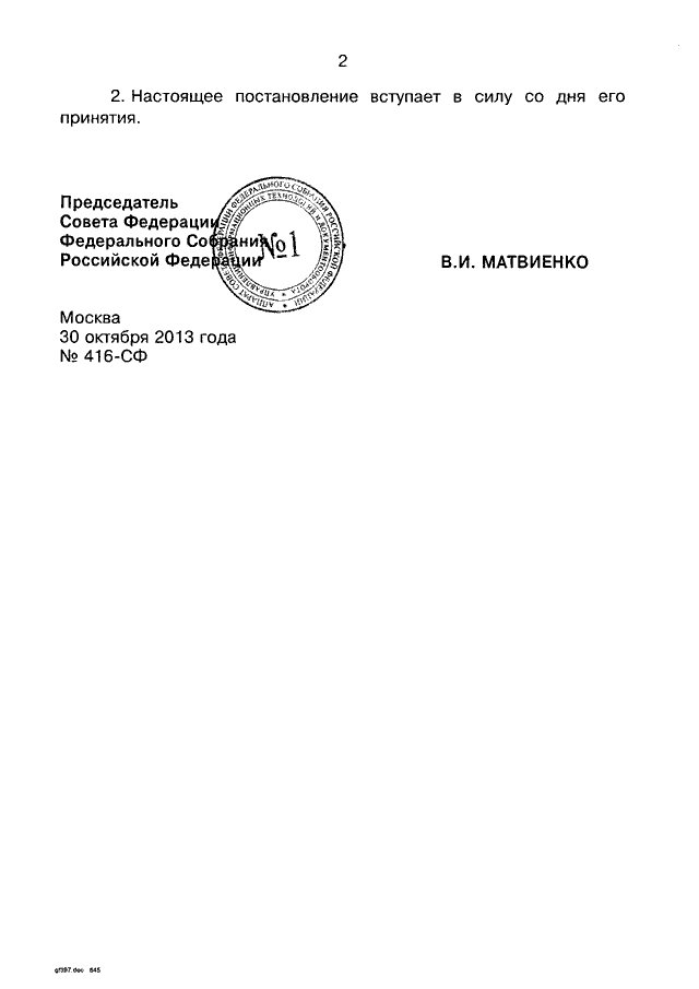 ПОСТАНОВЛЕНИЕ СФ ФС РФ от 30.10.2013 N 416-СФ