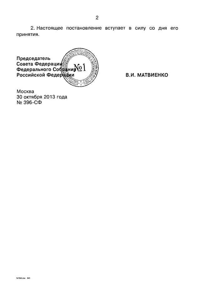 ПОСТАНОВЛЕНИЕ СФ ФС РФ от 30.10.2013 N 396-СФ