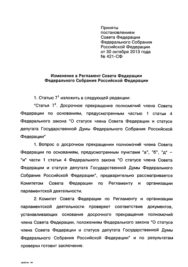 ПОСТАНОВЛЕНИЕ СФ ФС РФ от 30.10.2013 N 421-СФ