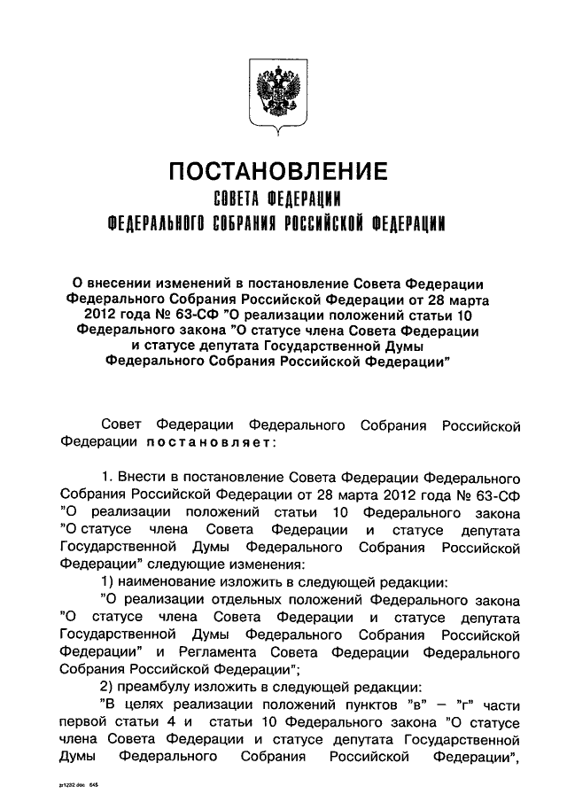 ФЕДЕРАЛЬНОГО СОБРАНИЯ РОССИЙСКОЙ ФЕДЕРАЦИИ ОТ 28 МАРТА 2012 Г.
