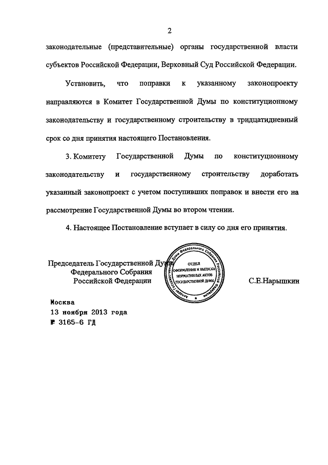 ПОСТАНОВЛЕНИЕ ГД ФС РФ от 13.11.2013 N 3165-6 ГД