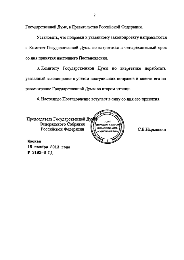 ПОСТАНОВЛЕНИЕ ГД ФС РФ от 15.11.2013 N 3192-6 ГД