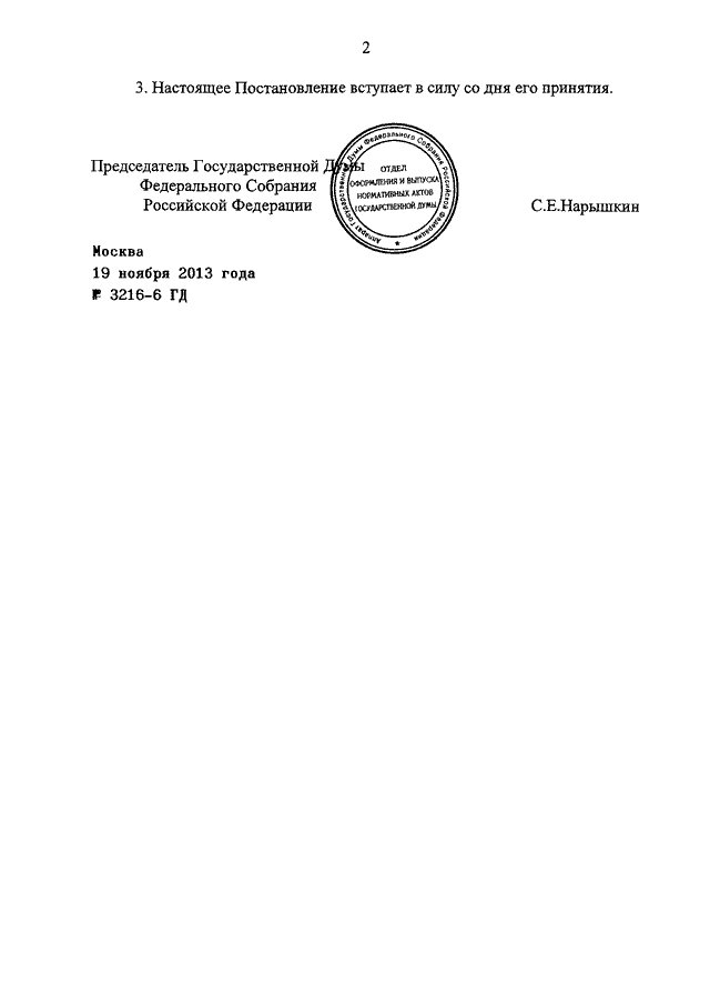 ПОСТАНОВЛЕНИЕ ГД ФС РФ от 19.11.2013 N 3216-6 ГД