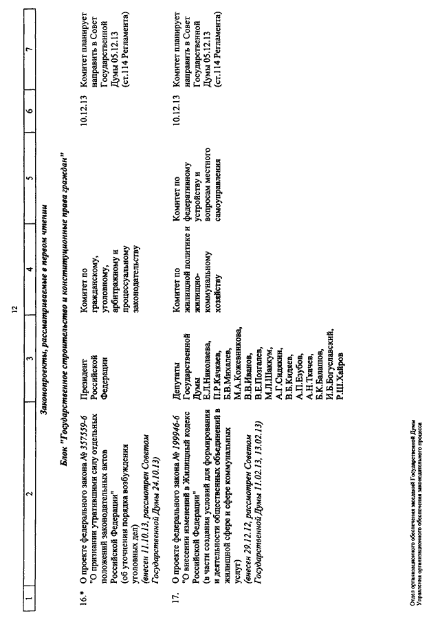 "О КАЛЕНДАРЕ РАССМОТРЕНИЯ ВОПРОСОВ ГОСУДАРСТВЕННОЙ ДУМОЙ С 10 ПО 20 ДЕКАБРЯ 2013 ГОДА"