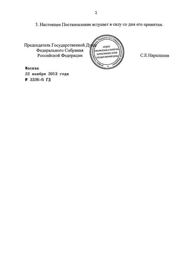 ПОСТАНОВЛЕНИЕ ГД ФС РФ от 22.11.2013 N 3336-6 ГД