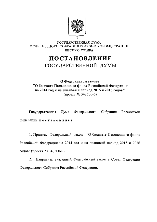 "О ФЕДЕРАЛЬНОМ ЗАКОНЕ "О БЮДЖЕТЕ ПЕНСИОННОГО ФОНДА РОССИЙСКОЙ ФЕДЕРАЦИИ НА 2014 ГОД И НА ПЛАНОВЫЙ ПЕРИОД 2015 И 2016 ГОДОВ" (ПРОЕКТ N 348500-6)"