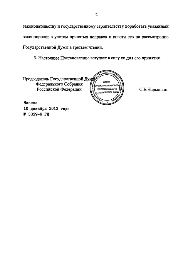 ПОСТАНОВЛЕНИЕ ГД ФС РФ от 10.12.2013 N 3359-6 ГД