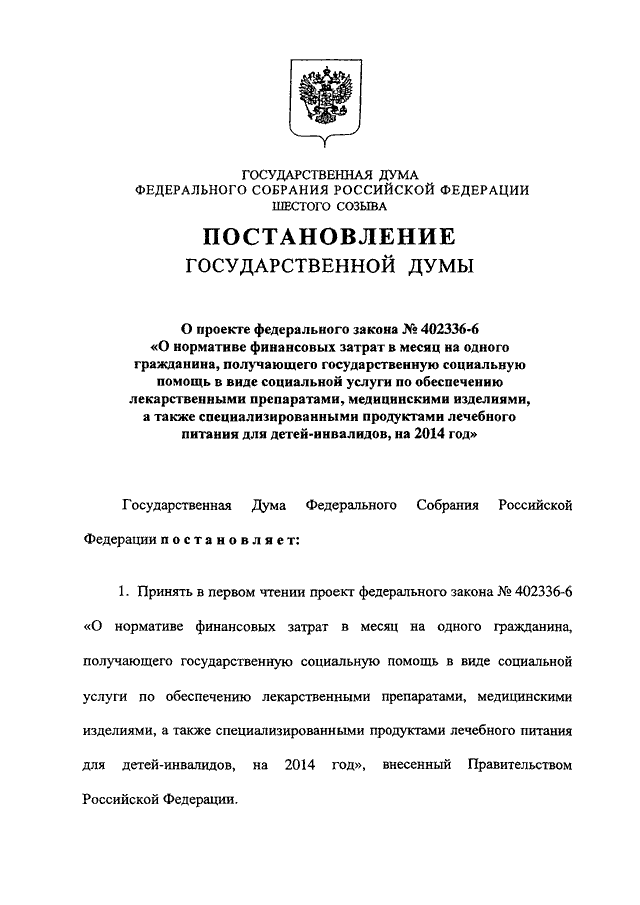"О ПРОЕКТЕ ФЕДЕРАЛЬНОГО ЗАКОНА N 402336-6 "О НОРМАТИВЕ ФИНАНСОВЫХ
