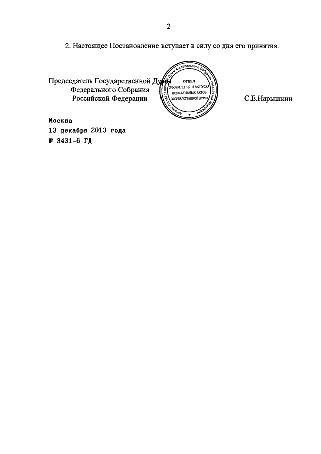 ПОСТАНОВЛЕНИЕ ГД ФС РФ от 13.12.2013 N 3431-6 ГД