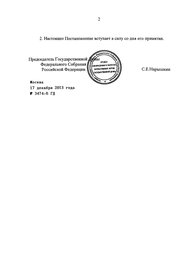 ПОСТАНОВЛЕНИЕ ГД ФС РФ от 17.12.2013 N 3474-6 ГД