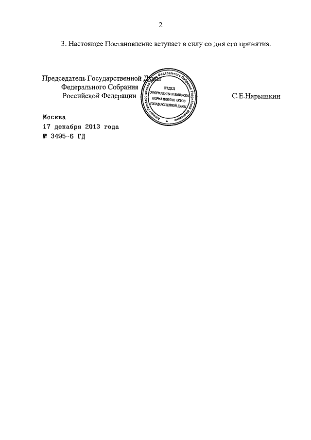 ПОСТАНОВЛЕНИЕ ГД ФС РФ от 17.12.2013 N 3495-6 ГД