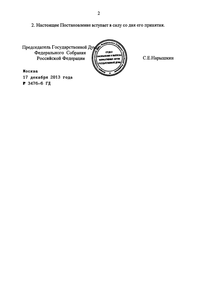 ПОСТАНОВЛЕНИЕ ГД ФС РФ от 17.12.2013 N 3476-6 ГД