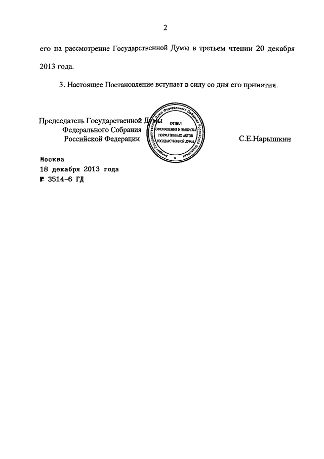 ПОСТАНОВЛЕНИЕ ГД ФС РФ от 18.12.2013 N 3514-6 ГД