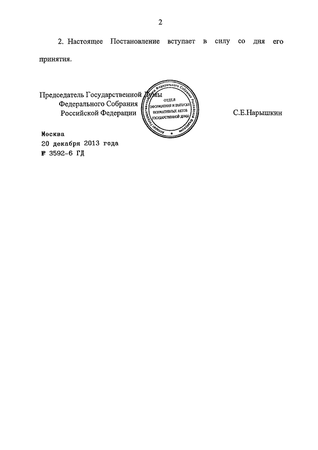 ПОСТАНОВЛЕНИЕ ГД ФС РФ от 20.12.2013 N 3592-6 ГД