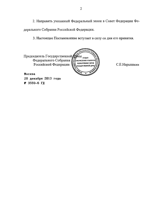ПОСТАНОВЛЕНИЕ ГД ФС РФ от 20.12.2013 N 3559-6 ГД