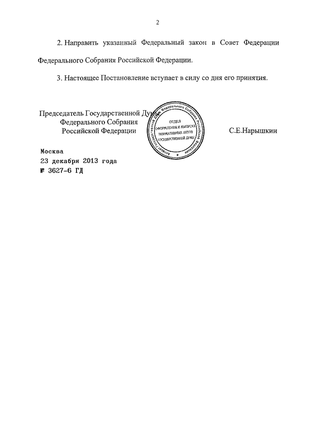 ПОСТАНОВЛЕНИЕ ГД ФС РФ от 23.12.2013 N 3627-6 ГД