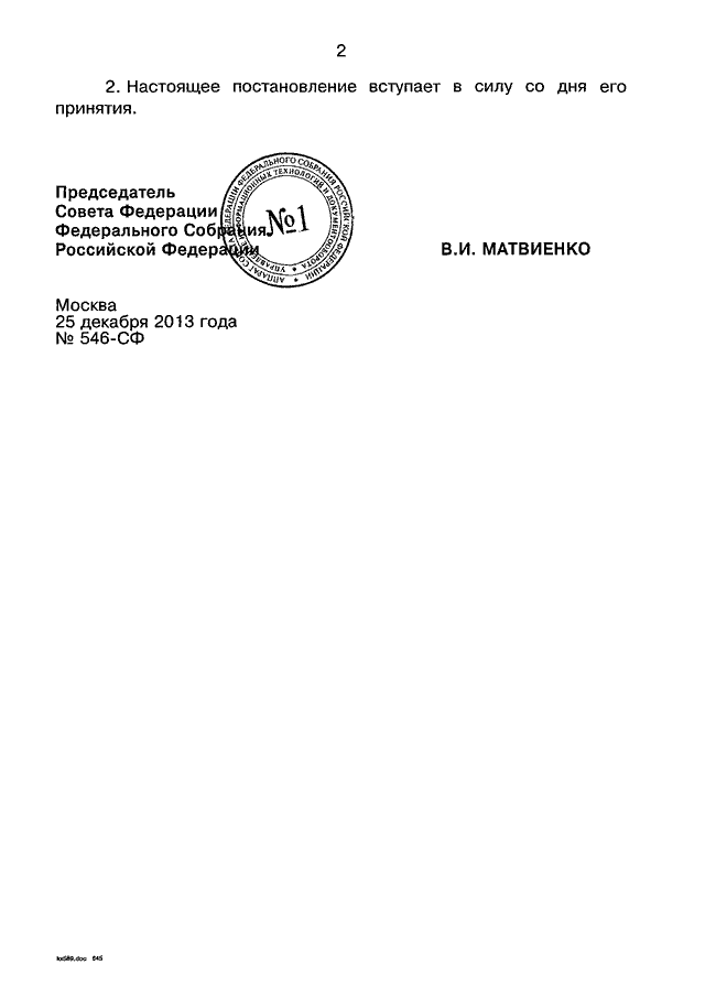 ПОСТАНОВЛЕНИЕ СФ ФС РФ от 25.12.2013 N 546-СФ