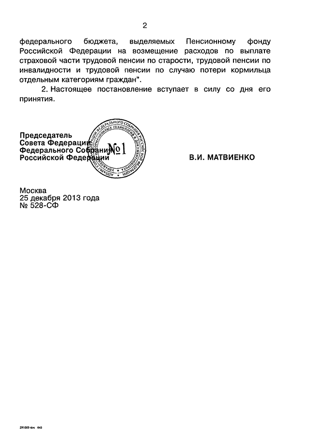 ПОСТАНОВЛЕНИЕ СФ ФС РФ от 25.12.2013 N 528-СФ