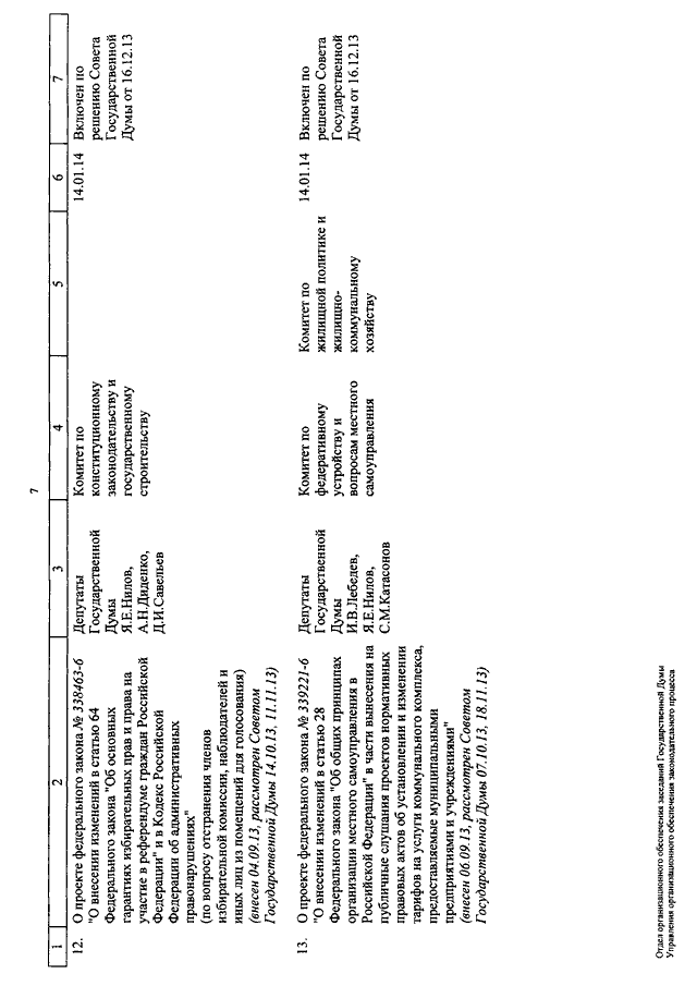 "О КАЛЕНДАРЕ РАССМОТРЕНИЯ ВОПРОСОВ ГОСУДАРСТВЕННОЙ ДУМОЙ С 14 ПО 24 ЯНВАРЯ 2014 ГОДА"