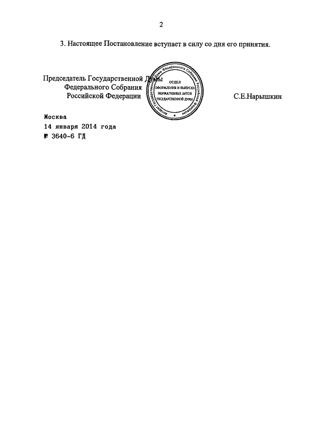 ПОСТАНОВЛЕНИЕ ГД ФС РФ от 14.01.2014 N 3640-6 ГД