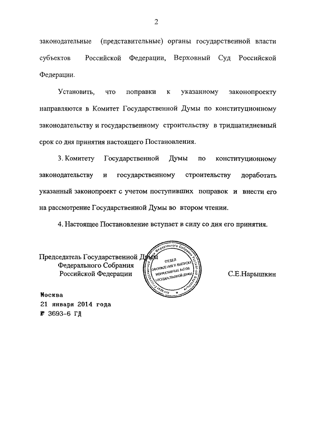 ПОСТАНОВЛЕНИЕ ГД ФС РФ от 21.01.2014 N 3693-6 ГД
