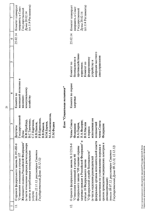 "О КАЛЕНДАРЕ РАССМОТРЕНИЯ ВОПРОСОВ ГОСУДАРСТВЕННОЙ ДУМОЙ С 11 ПО 28 ФЕВРАЛЯ 2014 ГОДА"