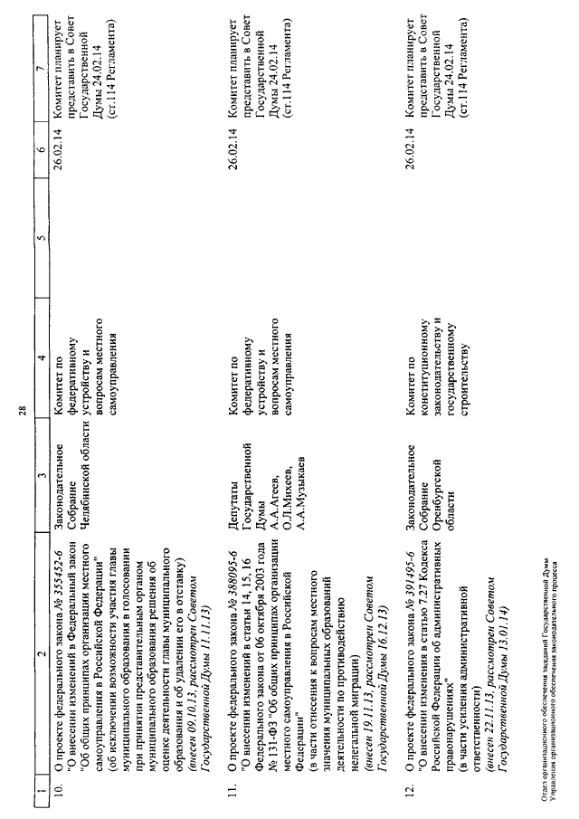 "О КАЛЕНДАРЕ РАССМОТРЕНИЯ ВОПРОСОВ ГОСУДАРСТВЕННОЙ ДУМОЙ С 11 ПО 28 ФЕВРАЛЯ 2014 ГОДА"