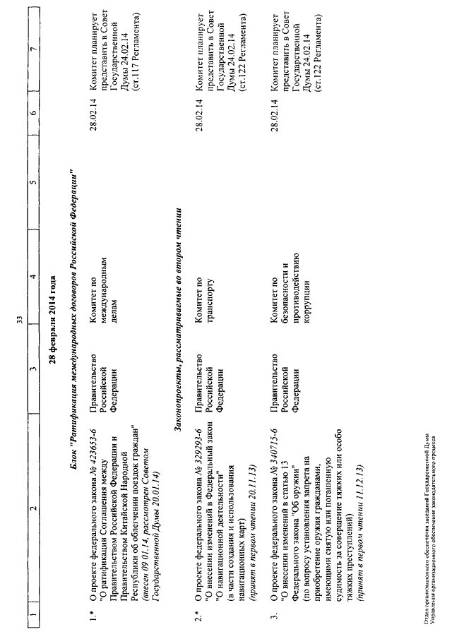"О КАЛЕНДАРЕ РАССМОТРЕНИЯ ВОПРОСОВ ГОСУДАРСТВЕННОЙ ДУМОЙ С 11 ПО 28 ФЕВРАЛЯ 2014 ГОДА"