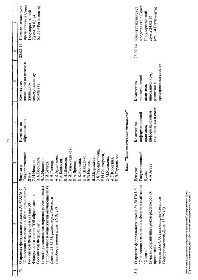 "О КАЛЕНДАРЕ РАССМОТРЕНИЯ ВОПРОСОВ ГОСУДАРСТВЕННОЙ ДУМОЙ С 11 ПО 28 ФЕВРАЛЯ 2014 ГОДА"
