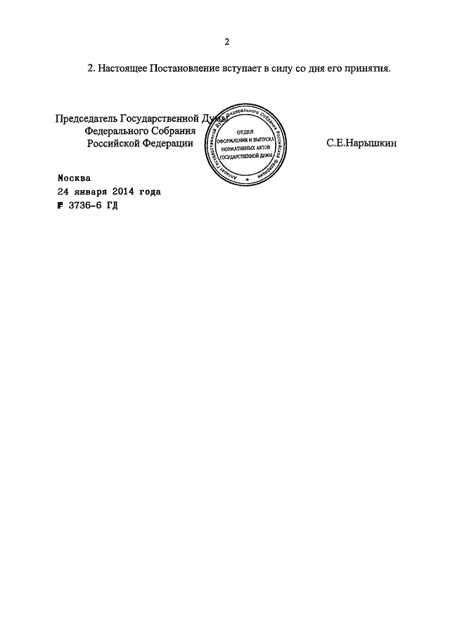 ПОСТАНОВЛЕНИЕ ГД ФС РФ от 24.01.2014 N 3736-6 ГД