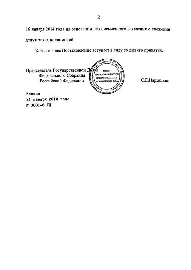 ПОСТАНОВЛЕНИЕ ГД ФС РФ от 21.01.2014 N 3681-6 ГД