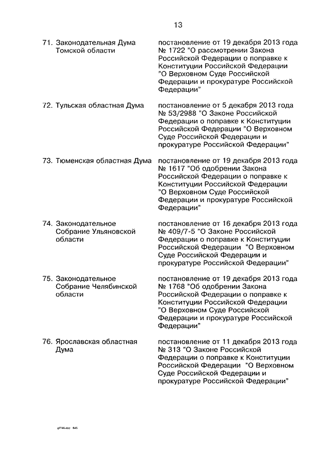 "ОБ УСТАНОВЛЕНИИ РЕЗУЛЬТАТОВ РАССМОТРЕНИЯ ЗАКОНОДАТЕЛЬНЫМИ (ПРЕДСТАВИТЕЛЬНЫМИ) ОРГАНАМИ ГОСУДАРСТВЕННОЙ ВЛАСТИ СУБЪЕКТОВ РОССИЙСКОЙ ФЕДЕРАЦИИ ЗАКОНА РОССИЙСКОЙ ФЕДЕРАЦИИ О ПОПРАВКЕ К КОНСТИТУЦИИ РОССИЙСКОЙ ФЕДЕРАЦИИ "О ВЕРХОВНОМ СУДЕ РОССИЙСКОЙ ФЕДЕРАЦИИ И ПРОКУРАТУРЕ РОССИЙСКОЙ ФЕДЕРАЦИИ"