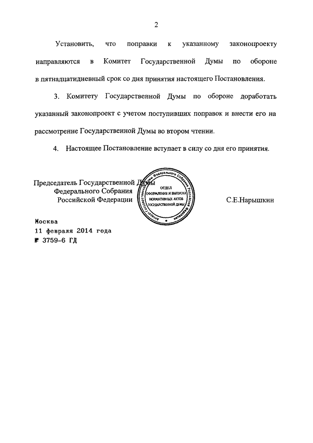 ПОСТАНОВЛЕНИЕ ГД ФС РФ от 11.02.2014 N 3759-6 ГД