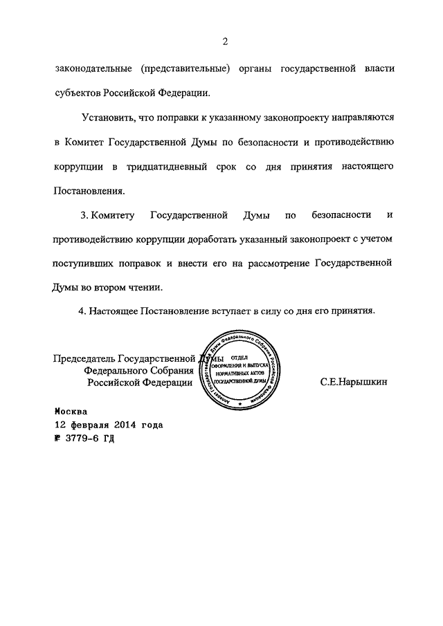 ПОСТАНОВЛЕНИЕ ГД ФС РФ от 12.02.2014 N 3779-6 ГД