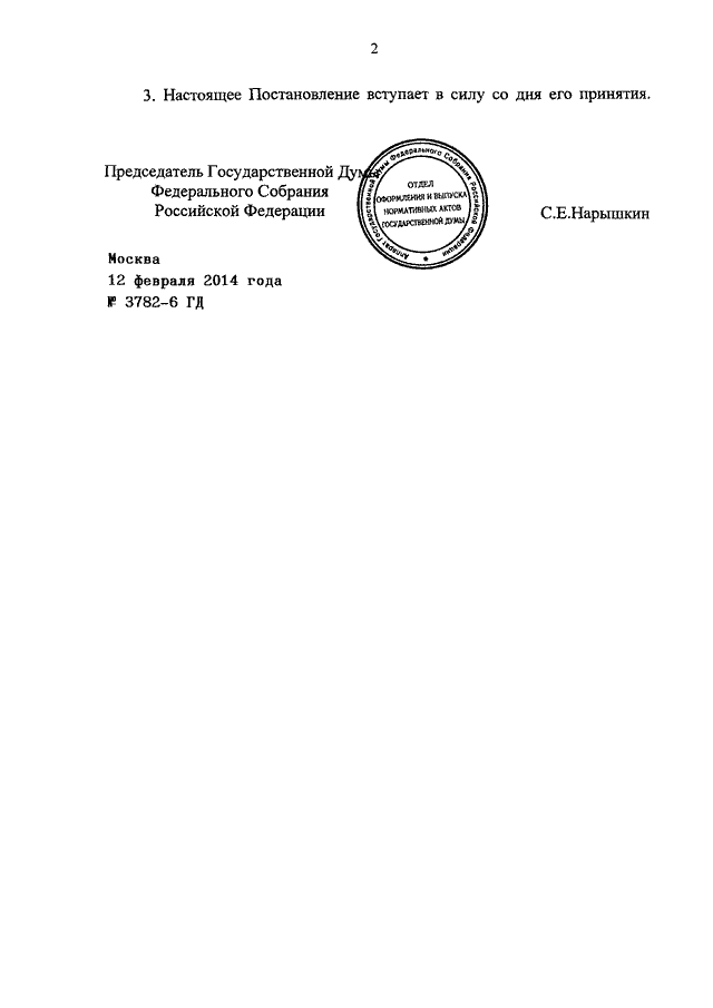 ПОСТАНОВЛЕНИЕ ГД ФС РФ от 12.02.2014 N 3782-6 ГД