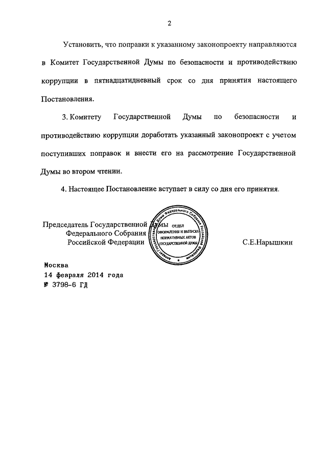 ПОСТАНОВЛЕНИЕ ГД ФС РФ от 14.02.2014 N 3798-6 ГД